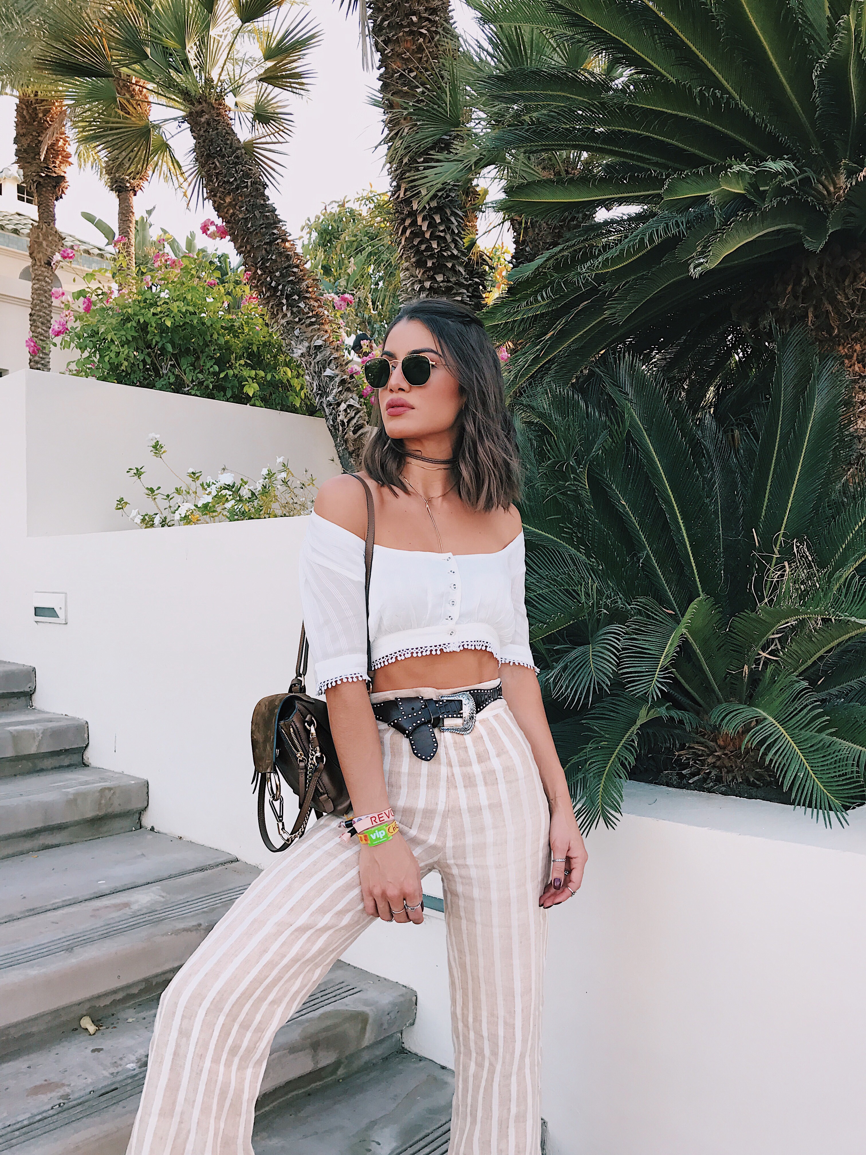 For the Revolve party on Saturday, I matched this super cute stripe linen pants by Tula Rosa with a white off-the-shoulder by