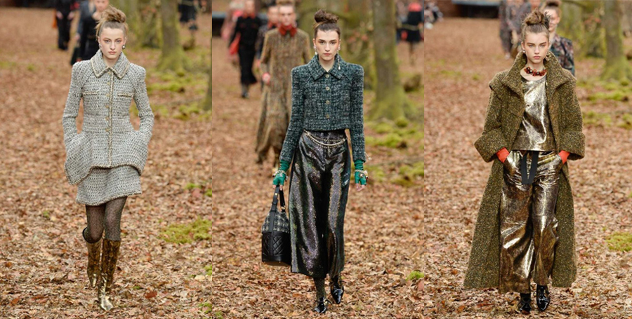 The show, as always, was beautiful! The runway was in full autumn climate, with an imaginary forest covered with trees, mosses and leaves. The Winter 2018 collection of the French maison presented incredible looks with covers, shawls, puffy jackets and maxi tweed coats. The touch of color was on account of the pink, red and orange silk scarves. The accessories have already entered my wishlist: metallic boots and maxi bags – which promise to become must haves of the season.