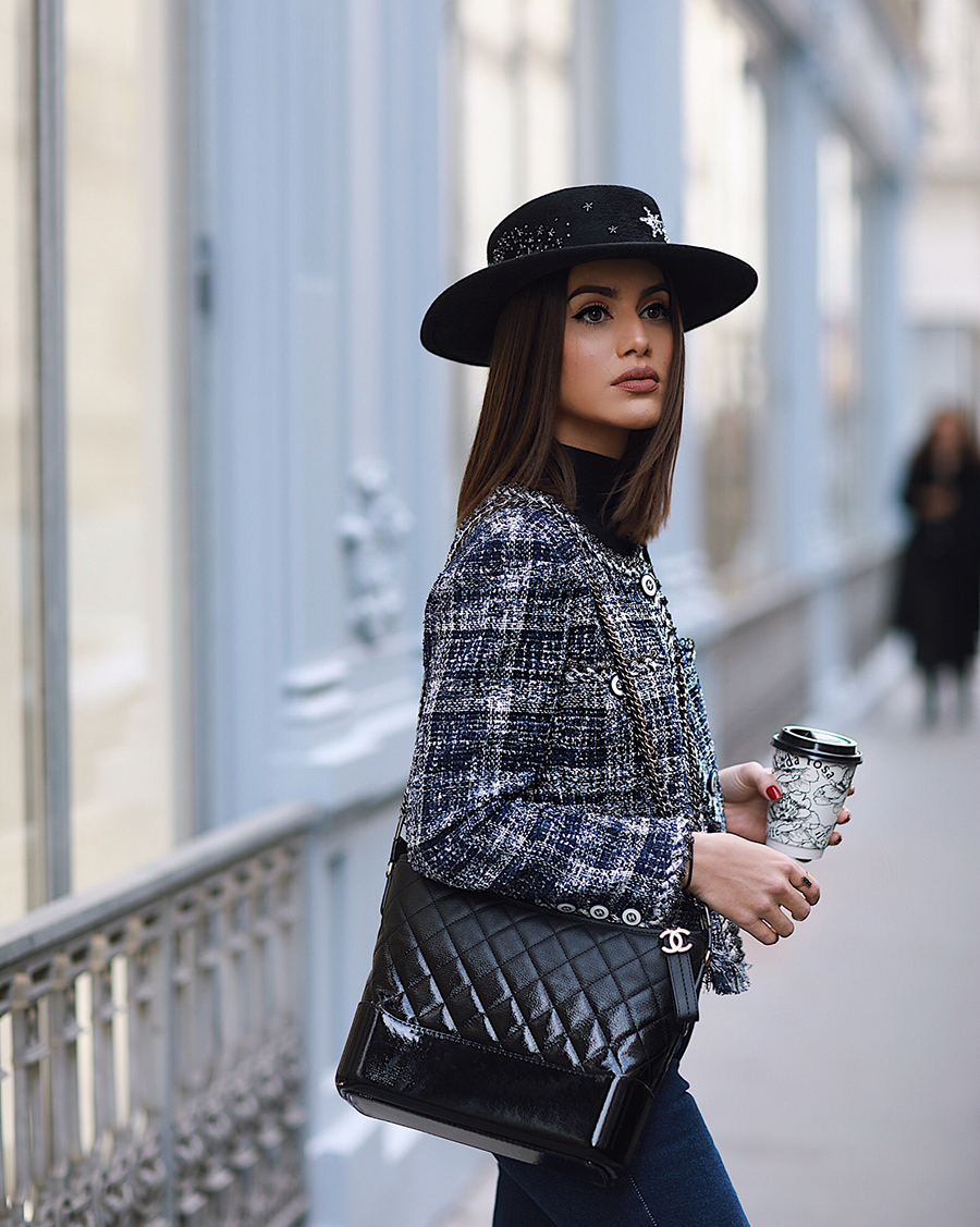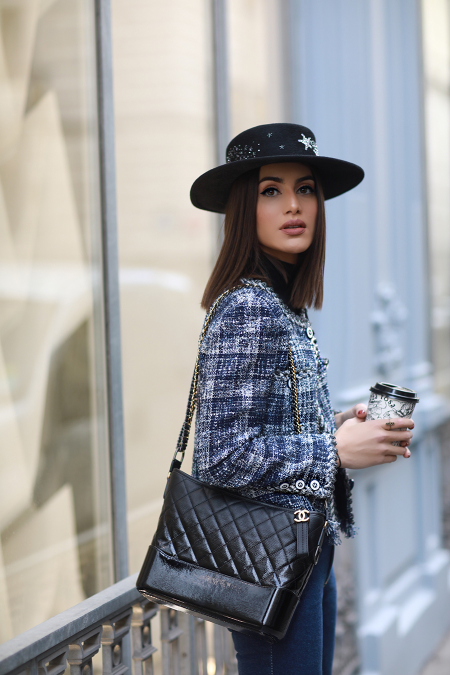 Jacket & Purse: Chanel | Jeans: Storets | Hat: Ruslan | Boots: Saint Laurent